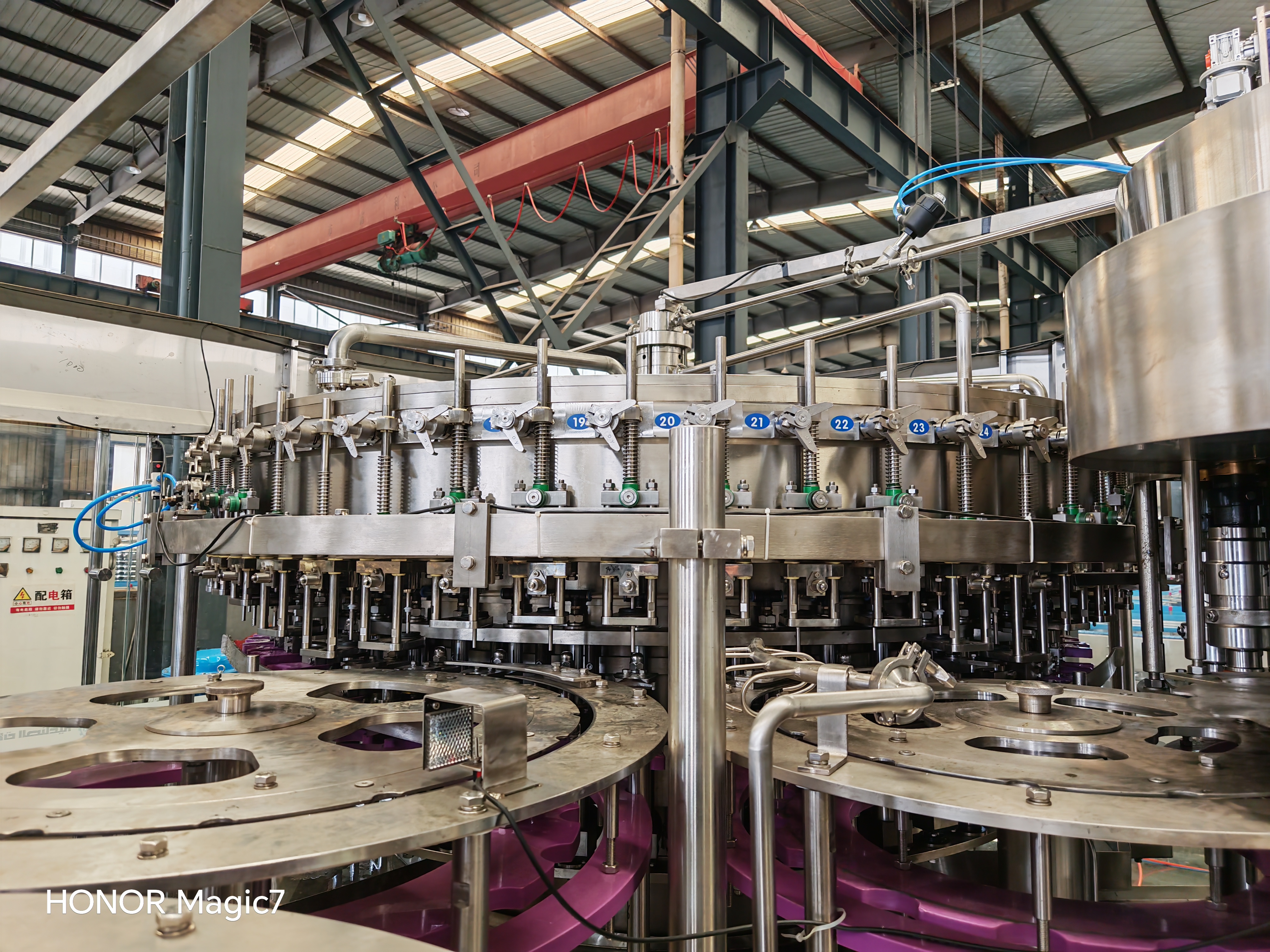 含氣飲料灌裝生產線配有CO2壓力控制精確,液位控制穩定;設有多處卡瓶、缺瓶、缺蓋、過載等保護報警裝置,確保出品質量。